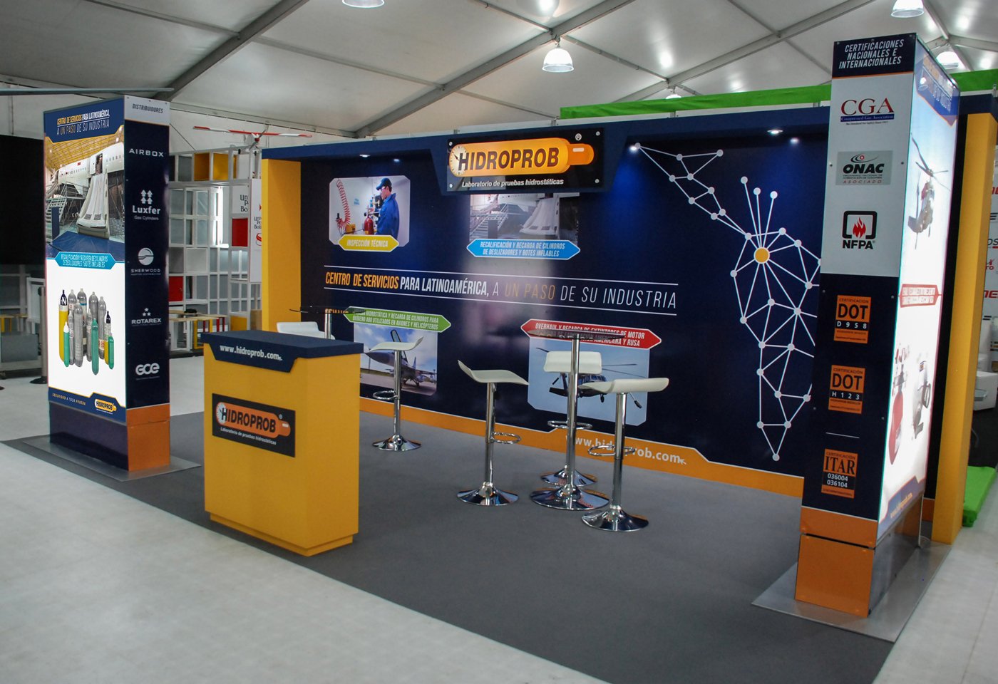 Hidroprob S.A., es un laboratorio de pruebas hidrostáticas de cilindros de alta y baja presión, actualmente tiene varias sucursales en Colombia, siendo reconocida internacionalmente en la industria gracias a sus 30 años de operación.
