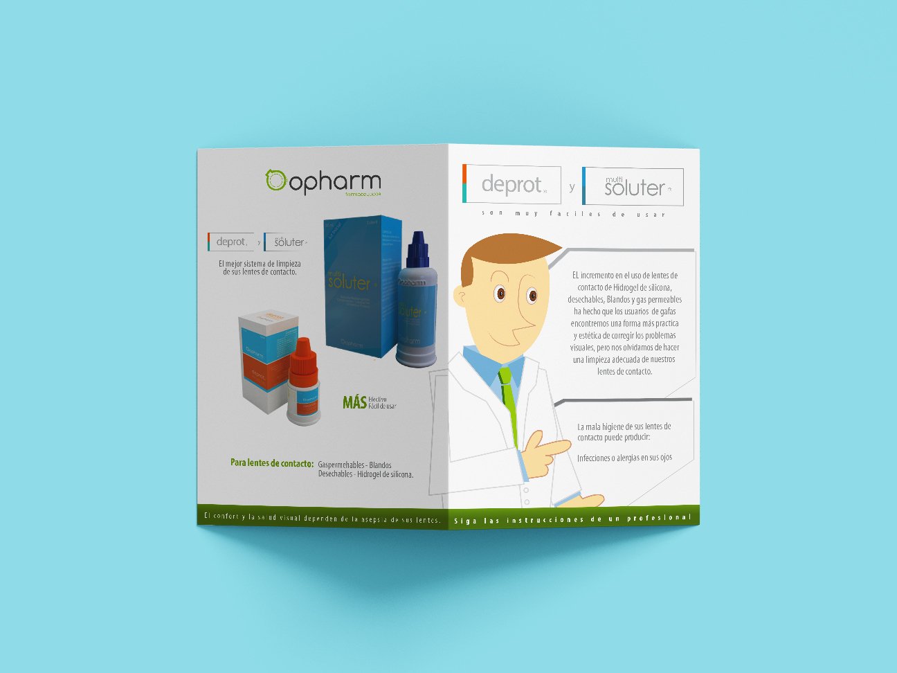 Opharm, es uno de los laboratorios farmacéuticos más importantes en la industria de soluciones oftálmicas en Colombia, su marca es reconocida en el mercado por su alto nivel de calidad en todo su portafolio, estas cualidades y beneficios en sus productos debían ser enseñadas de manera clara y amigable para lo cual, apoyamos con el diseño de una de sus piezas gráficas.